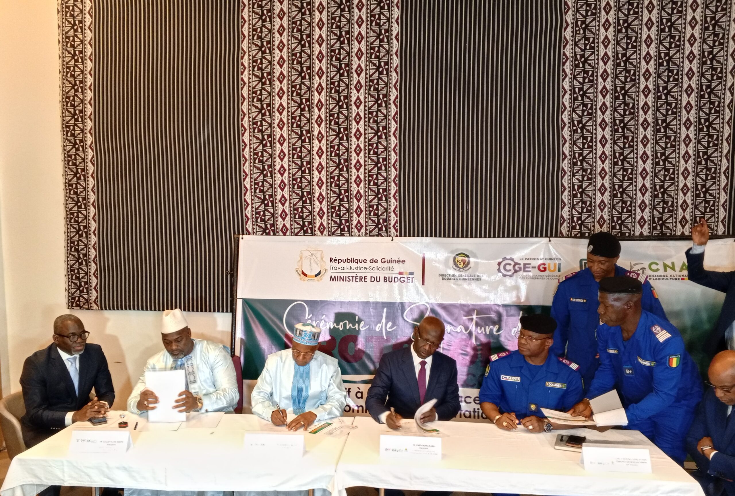 Ladite signature s’est tenue lundi, 10 mars entre les acteurs clés de l’économie nationale en l’occurrence : la direction générale des douanes, le patronat guinéen, la chambre de commerce d’industrie et d’artisanat de Guinée, et la chambre nationale d’agriculture.