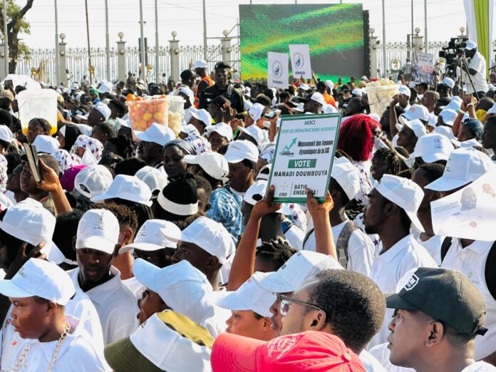 La campagne électorale du Général Mamadi Doumbouya (GMD) a officiellement pris fin ce jour dans une atmosphère de ferveur et de communion populaire, en présence du candidat lui-même. La place du Palais du Peuple, noire de monde, a servi de cadre à cette ultime démonstration de soutien populaire, symbole d’une dynamique nationale portée par l’espoir et l’adhésion.