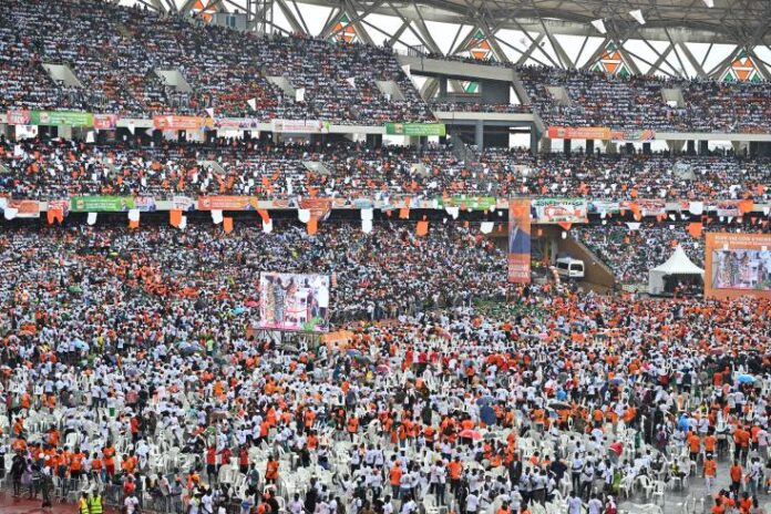 Dimanche, le stade d’Ebimpé à Abidjan de 60.000 places avait fait le plein pour le meeting du Rassemblement des Houphouëtistes pour la démocratie et la paix (RHDP), le parti du chef de l’Etat Alassane Ouattara. Ce dernier y a annoncé qu’il prendrait une décision « dans les jours qui viennent » concernant sa candidature à un quatrième mandat à la présidentielle d’octobre.