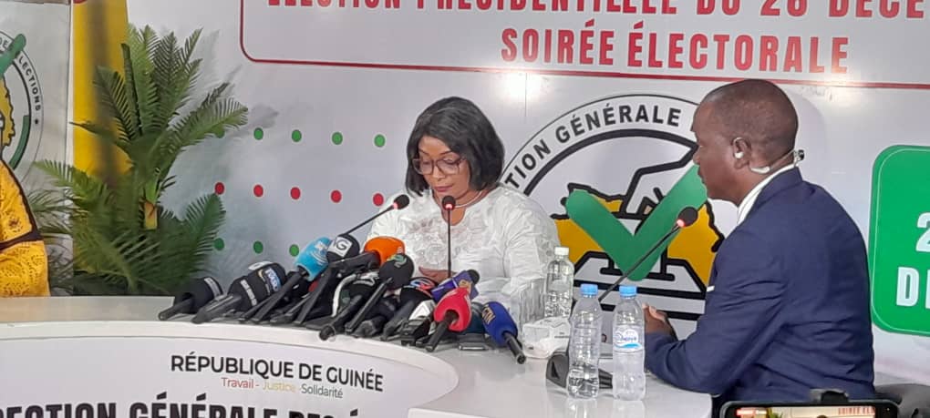 La Directrice générale des élections, Madame Camara Djenabou Touré, a proclamé ce mardi 28 décembre 2025 les résultats provisoires du premier tour de l’élection présidentielle tenue le 28 décembre sur l’ensemble du territoire national et à l’étranger. À l’issue de la centralisation et de la compilation des résultats, le candidat de la Génération pour la Modernité et le Développement (GMD), Mamadi Doumbouya, est déclaré vainqueur dès le premier tour avec 4 594 262 voix, soit 86,72 % des suffrages valablement exprimés.