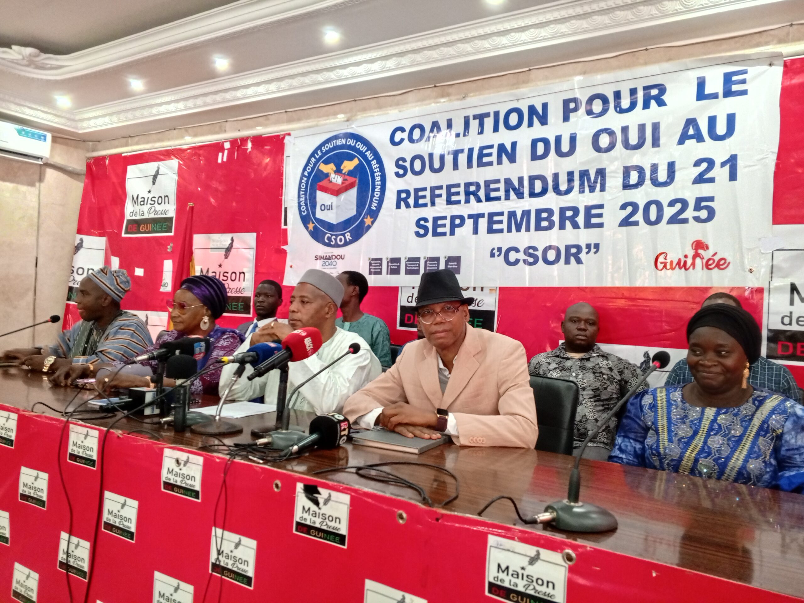 Lors d’une conférence de presse conjointe tenue ce samedi 12 juillet à la Maison Commune des Journalistes, située à la Minière, le Dr. Ben Youssouf Keïta, accompagné notamment du Pr. Lamarana-Petty Diallo et d’Abdoul Mazid Bah, ainsi que de tous les membres de sa coalition, ont lancé un appel au peuple de Guinée à voter massivement en faveur du « OUI » lors du prochain référendum prévu pour le 21 septembre 2025.