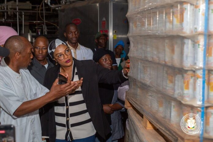 Initiative Présidentielle, consacrée à la relance des unités industrielles, Madame la Ministre de l’Industrie et des PME s’est rendue à Kankan, pour évaluer les travaux préparatoires de la mise en ligne de l’usine de jus de fruits de Kankan.