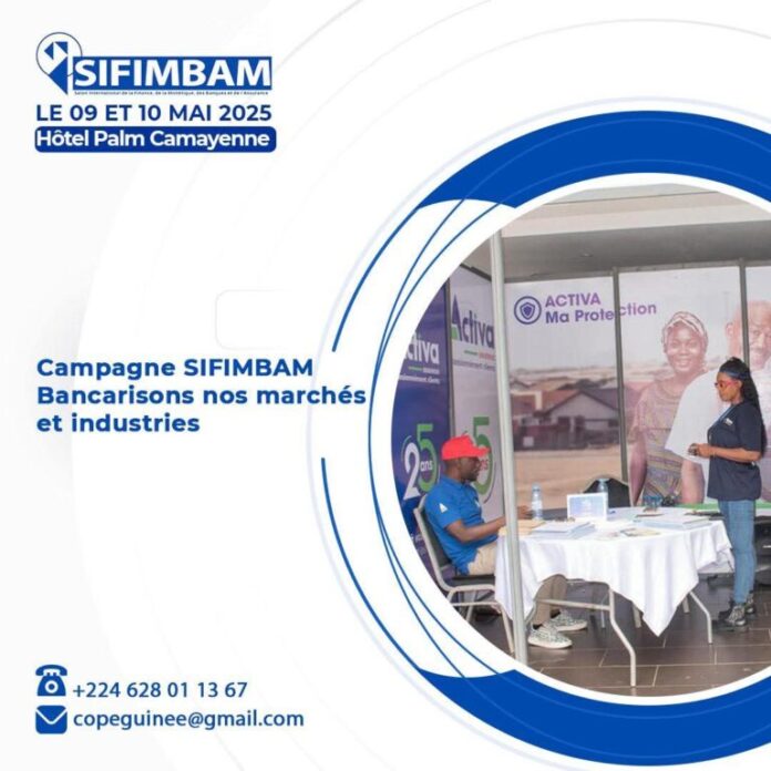 La grande campagne « Bancariser et Assurer nos Marchés, entreprises et industries » commerce bientôt ! Du 5 au 8 Mai 2025, retrouvez-nous dans les marchés de Madina, Avaria, Taouyah, Bambeto, Sonfonia, Cimenterie, Km36, coyah et dans les unités industrielles de Coyah & Dubreka. Une initiative portée par les institutions participantes au SIFIMBAM 2025 pour promouvoir l’inclusion financière.