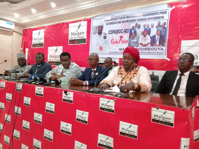 La Coalition des Partis Politiques et Mouvement pour la candidature de Mamadi Doumbouya (COPAMOC MD), pilotée par Me. Pépé Koulémou, président ARN et président CTR a fait vendredi, 24 janvier 2024 à la maison commune des journalistes sise à la minière dans la commune de Dixinn à Conakry. Déclaration au cours laquelle, les membres de ladite coalition ont sollicité la candidature du Général d’Armée, Mamadi Doumbouya à la prochaine élection présidentielle guinéenne.